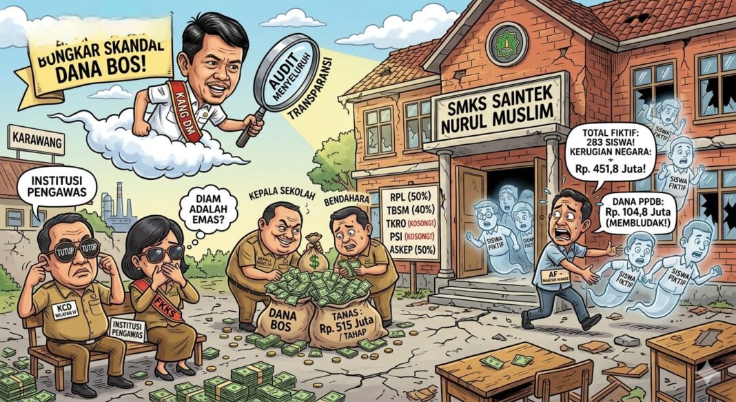 KARAWANG | ONEDIGINEWS.COM – Praktik pengelolaan Dana Bantuan Operasional Sekolah (BOS) di SMKS Saintek Nurul Muslim mencuat ke publik.