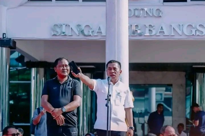 KARAWANG | ONEDIGINEWS.COM – Bupati Karawang, H. Aep Syaepuloh, S.E., bersama Wakil Bupati Karawang H. Maslani dan Sekretaris Daerah Kabupaten Karawang H. Asep Aang Rahmatullah, S.STP., M.P., melaksanakan kegiatan senam pagi rutin di lingkungan Pemerintah Daerah Kabupaten Karawang, Jumat pagi (12/12/2025).
