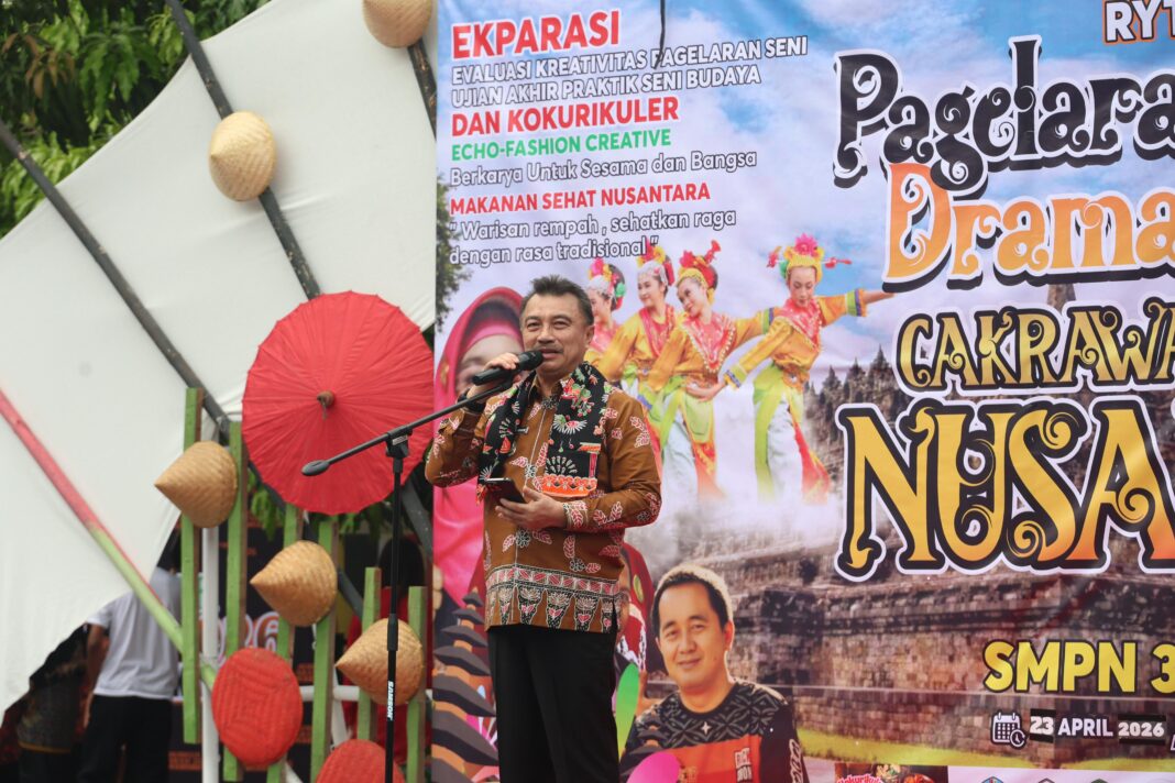KOTA BEKASI, ONEDIGINEWS.COM – Wakil Wali Kota Bekasi, Abdul Harris Bobihoe, menghadiri pagelaran drama kolosal bertajuk “Cakrawala Budaya Nusantara” yang diselenggarakan di SMPN 38 Kota Bekasi. Kegiatan ini turut dihadiri Plt Kepala Dinas Pendidikan Kota Bekasi, camat, lurah, unsur Forkopimda, para guru, serta orang tua murid.