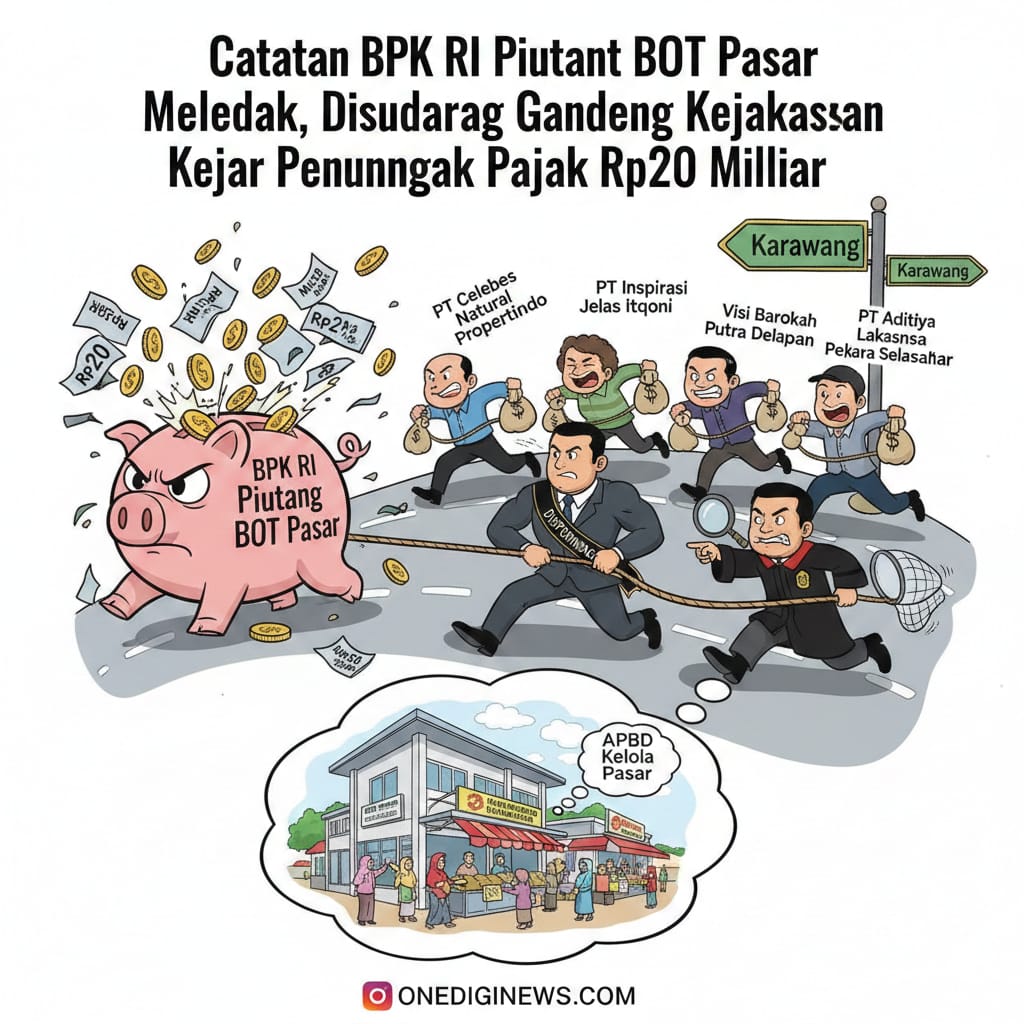 KARAWANG | ONEDIGINEWS.COM | Masalah pengelolaan pasar dengan skema Build Operate Transfer (BOT) di Kabupaten Karawang terus menyisakan persoalan piutang setiap tahunnya. Berdasarkan Laporan Keuangan Pemerintah Kabupaten Karawang tahun 2024, tercatat saldo piutang retribusi pemanfaatan aset daerah dari kemitraan BOT mencapai angka fantastis, yakni sebesar Rp20.066.999.998,00.