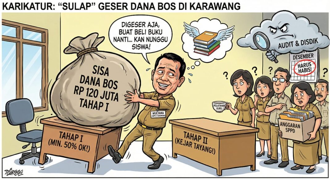 KARAWANG | ONEDIGINEWS.COM | Pengelolaan Dana Bantuan Operasional Sekolah (BOS) di SMPN 3 Karawang menjadi sorotan.