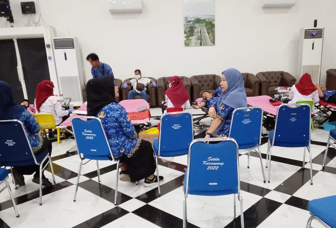 KARAWANG | ONEDIGINEWS.COM | Peringatan Hari Ulang Tahun (HUT) ke-54 Korps Pegawai Republik Indonesia (Korpri) di Kabupaten Karawang diwarnai dengan aksi sosial berupa pemeriksaan kesehatan gratis dan donor darah. Kegiatan ini berlangsung di Aula Husni Hamid, Komplek Pemda Karawang, pada Senin, 1 Desember 2025.Tim Humas RSUD Karawang, Abdul Lutfi, menjelaskan bahwa kegiatan ini difokuskan untuk melayani para Aparatur Sipil Negara (ASN). Dalam pelaksanaannya, RSUD Karawang menerjunkan tim medis lengkap berjumlah 13 personel yang terdiri dari dokter pemeriksa, tujuh perawat, satu ahli gizi, serta tenaga pendukung lainnya.