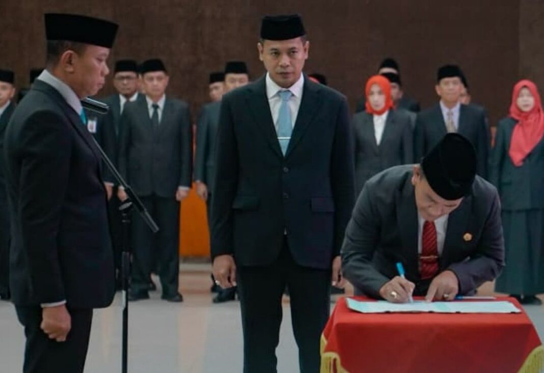 Sekda Karawang, H. Asep Aang Rahmatullah, hadir sebagai saksi pelantikan bersama Kepala Badan Kepegawaian Daerah Provinsi Jawa Barat, Dr. H. Dedi Supandi, S.STP., M.Si.